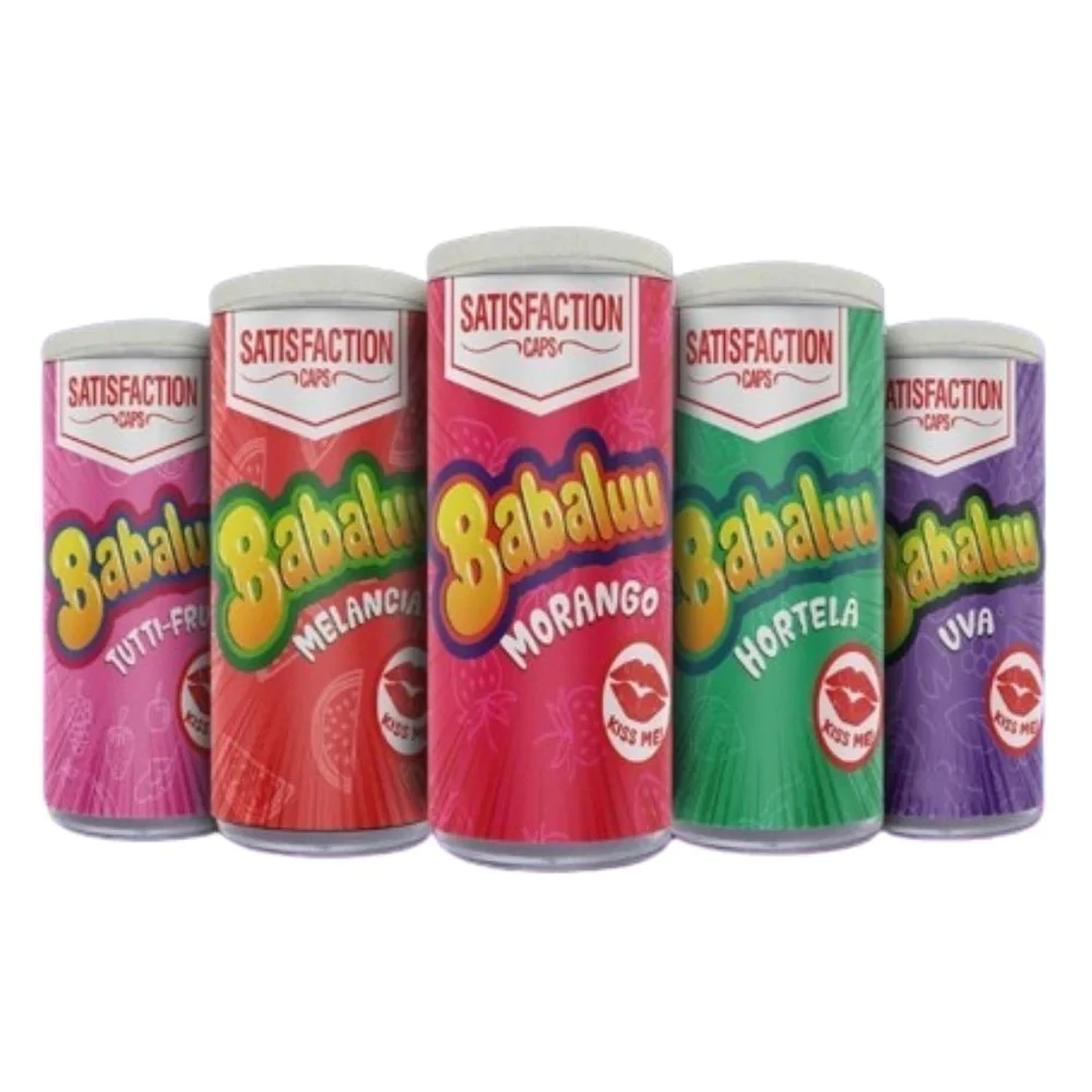 As Bolinhas Explosivas Babaluu da Satisfaction Caps possuem: Água, Gelatina, Glicerol, Metilparabeno, Propilparabeno, Corante de Ponceau 16255, óleo de soja, Neotame, Cera branca de abelha, Manteiga de Karité, Aroma.