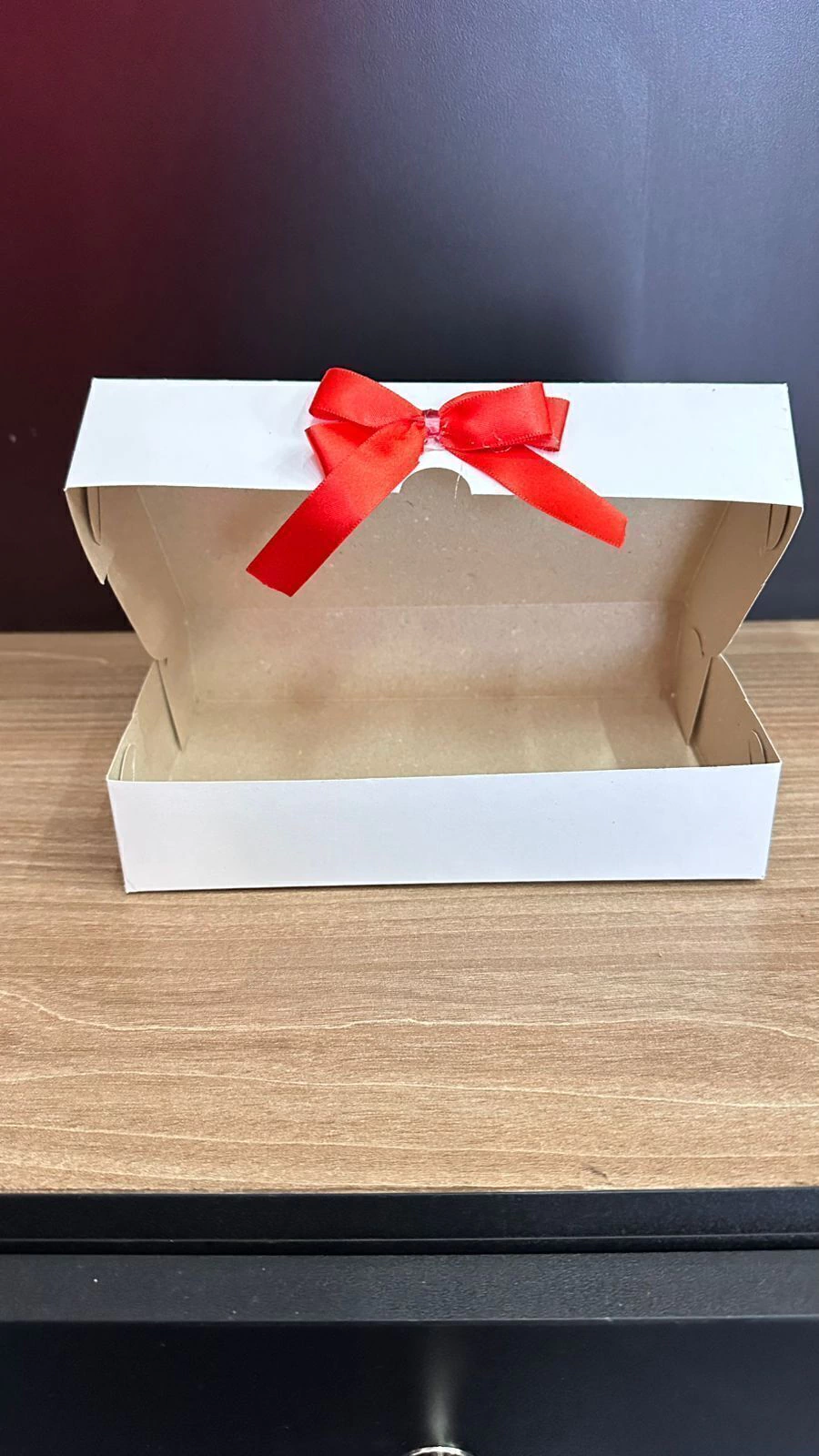 Cores disponíveis: branca Medidas: 19 cm x 12 cm (Base) x 4 cm (Altura) Material: Papel cartão Kraft Gramatura: 250g. Montagem simples (tampa e fundo). Os produtos possuem corpo único com a mesma dimensão na tampa e fundo.